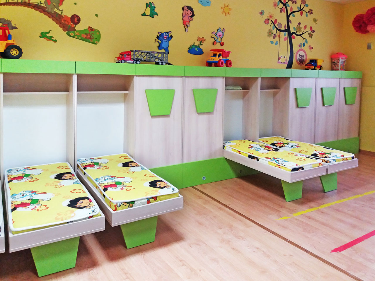 Екипът на детска градина Брезичка заложи на многофункционални падащи легла при обзавеждането на залите си. Изработени от висококачествени материали и в чудесна цветова гама, детските падащи легла осигуряват пространство за игри и комфорт при почивка.