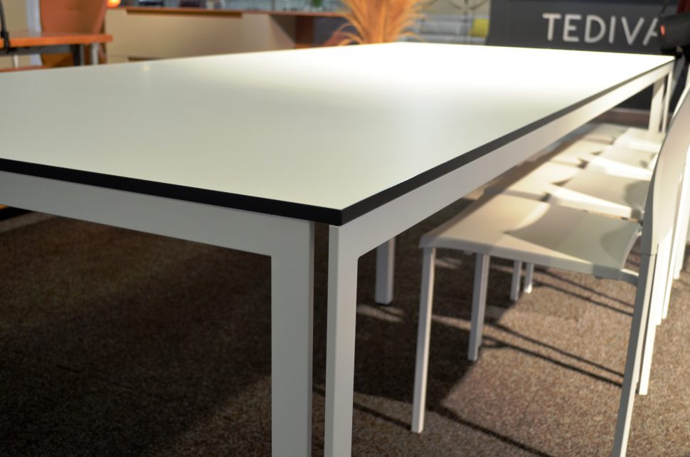 We presented our lecture table “Step” with a new vision and capabilities. Made large size 3100/1300 mm, but with the same elegant metal construction. Top 14 mm HPL. Suitable for 14 people. Extremely light and strong. Convenient for transportation, easy to install and disassemble.