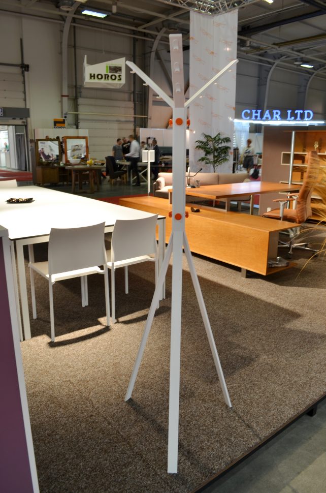 We presented a new type of trapezoid table, made of chipboard and metal. With proportional dimensions, allowing several tables to be arranged in different shapes. We have improved and made a fresh accent to our stand hanger “Leader”.