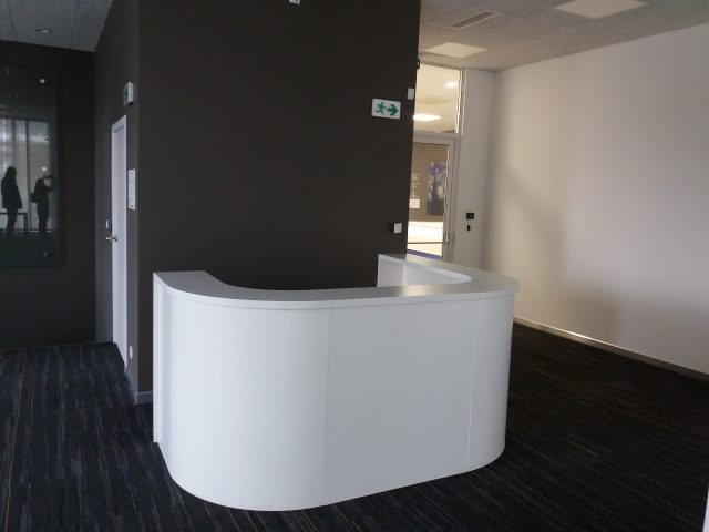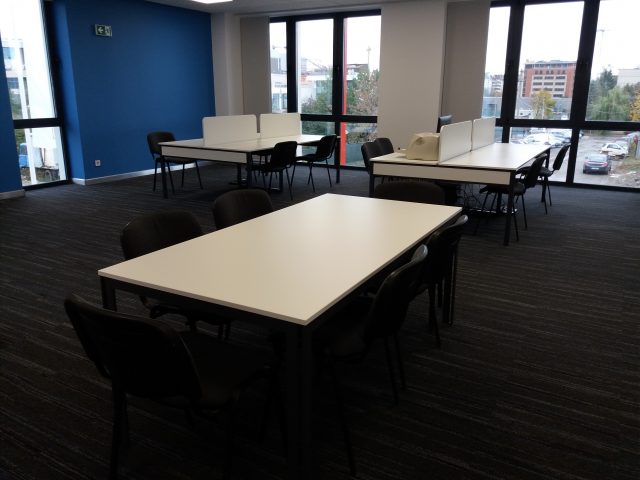 The teachers’ offices are furnished with our standard “I-office” series, combined for several workstations, cabinets and wardrobes with sliding doors. All the furniture is in one style and colours.