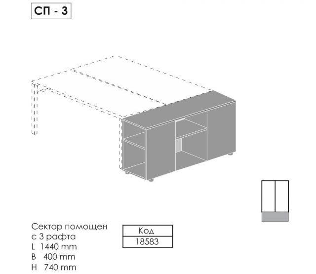 - auxiliary cupboards to the desk
