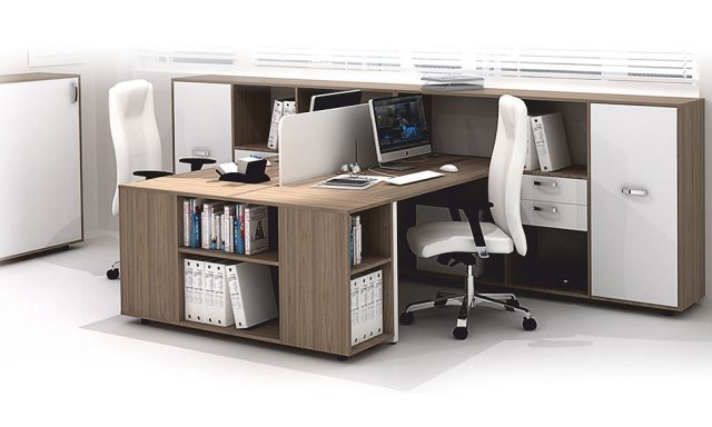 The desks with two working places are available in several models and in different colours.