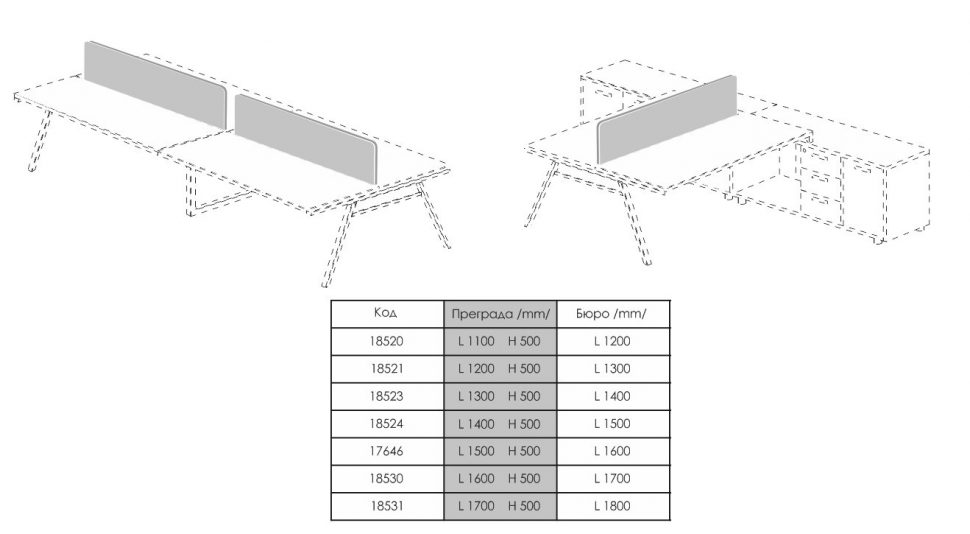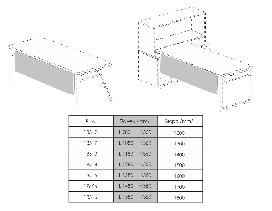 The desks can be combined with various accessories and additional modules – a front panel, a computer stand, a pedestal with a drawers, cupboards and more.
