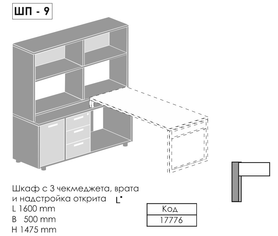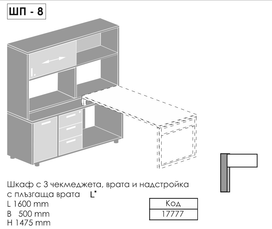 - auxiliary sections with drawers and shelves