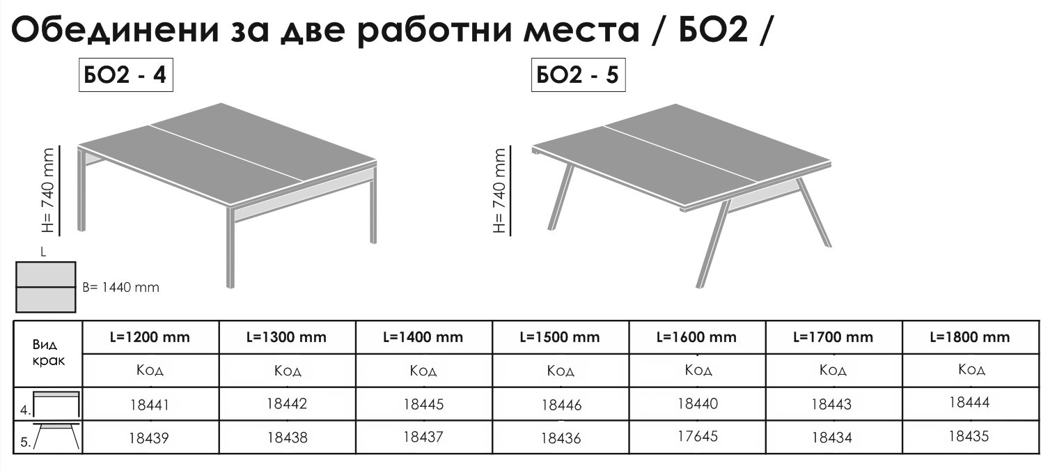 Ideal solution for two employees in one office. The united desks for two working places are convenient, saves space and resources, predispose face to face communication and more efficient work. If necessary, a devider can be placed between the desks.