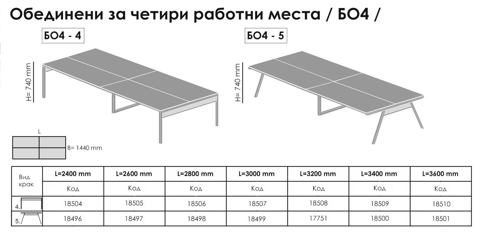 The desk unated for four working places, combined with appropriate cupboards and office accessories, will easily create the perfect working environment for one team.
