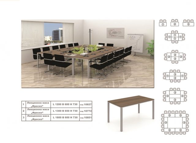 The Lecture Tables “Fresco” are made with a modern line with very good proportions. The thickness of the frame with the countertop is equal to that of the legs - 40mm. And multiples of two dimensions (1200 / 600mm) allow the tables to be composed in a several ways so as to perform different purposes.