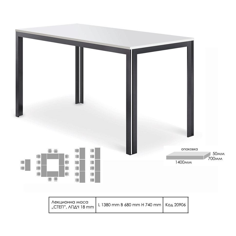 Лекционна маса Степ впечатлява с изчистената си линия и уникален дизайн. Подходяща за офис помещения, конферентни и учебни зали.
