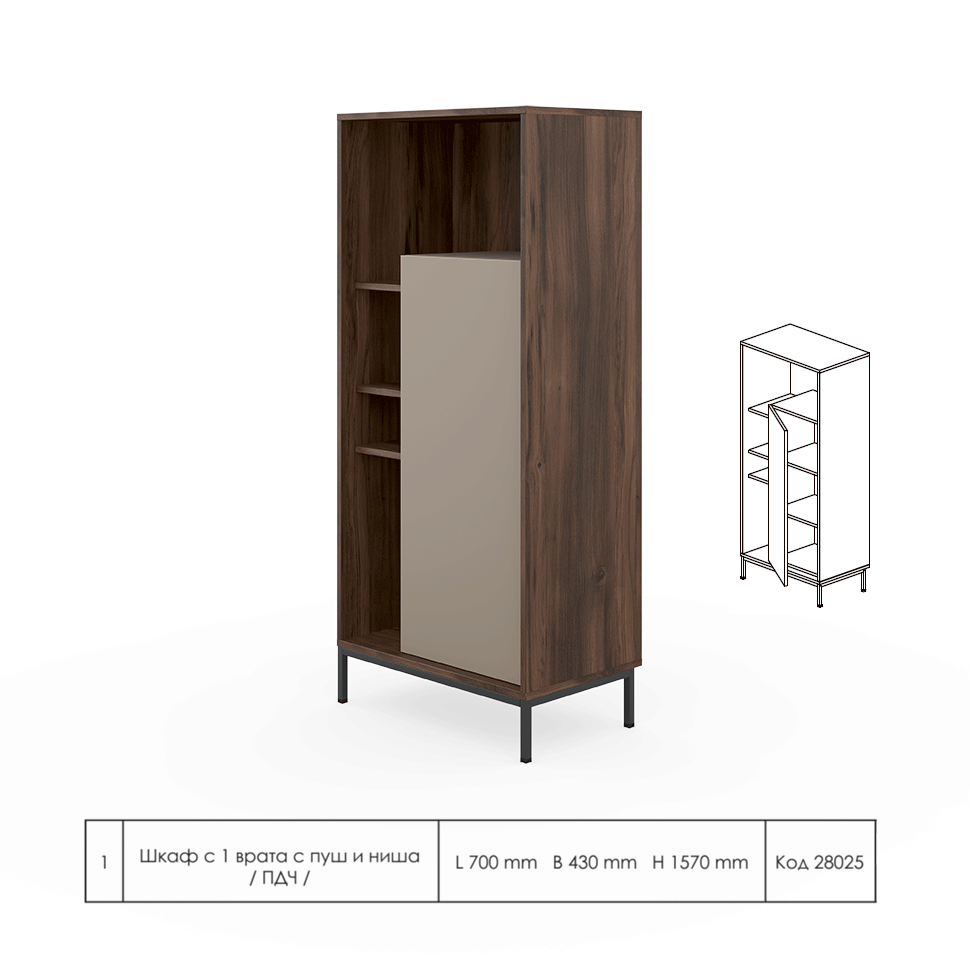 • Код 28025 Шкаф с 1 врата с пуш и ниша /ПДЧ/