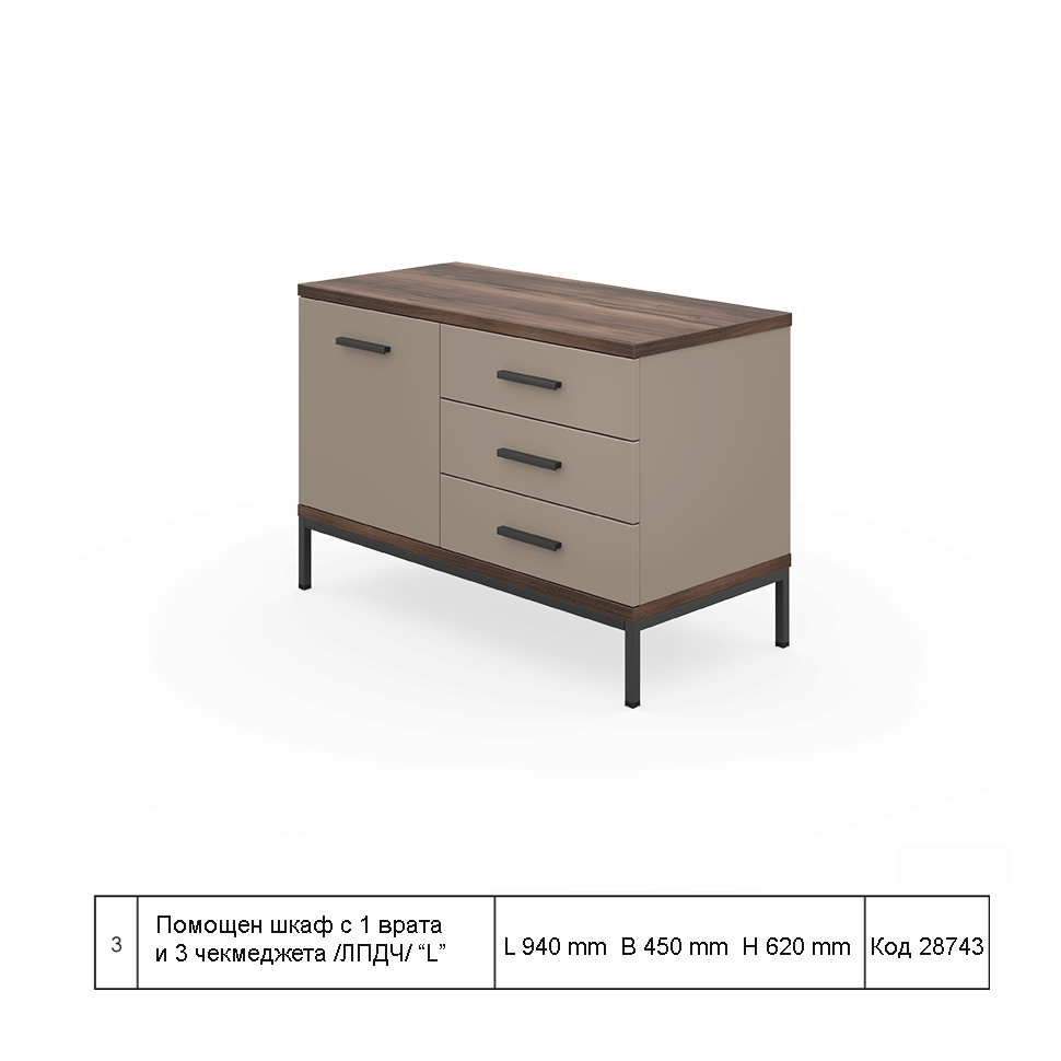 • Код 28743  Помощен шкаф с 3 чекмеджета и 1 врата /ПДЧ/