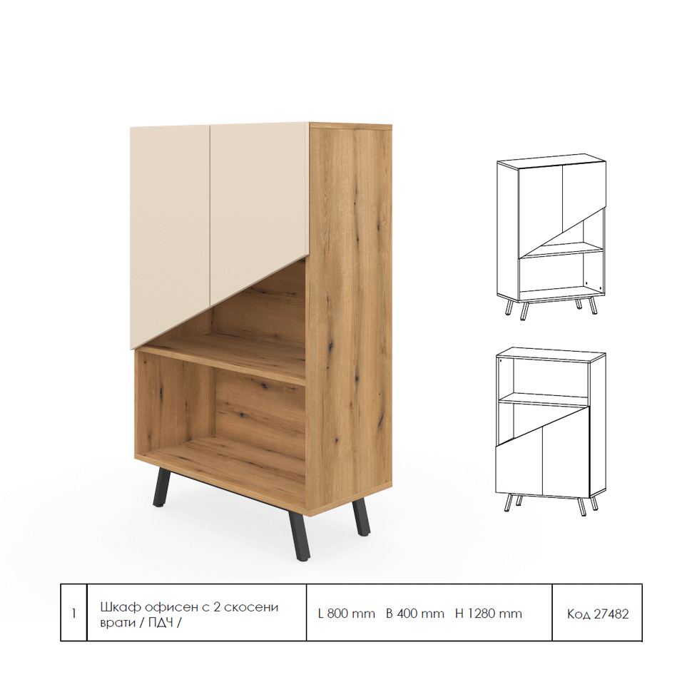- Код 27482 Шкаф офисен с 2 скосени врати /ПДЧ/