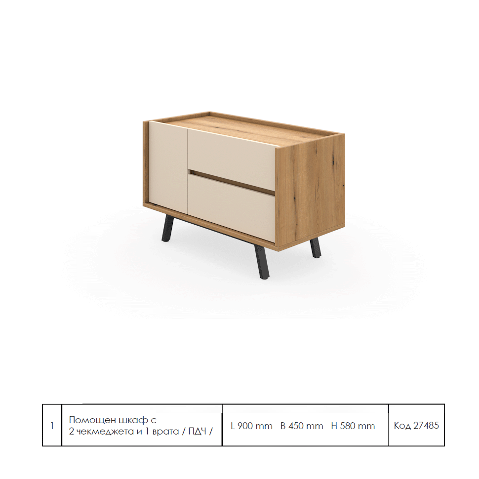 - Код 27485 Помощен шкаф с 2 чекмеджета и 1 врата /ПДЧ/