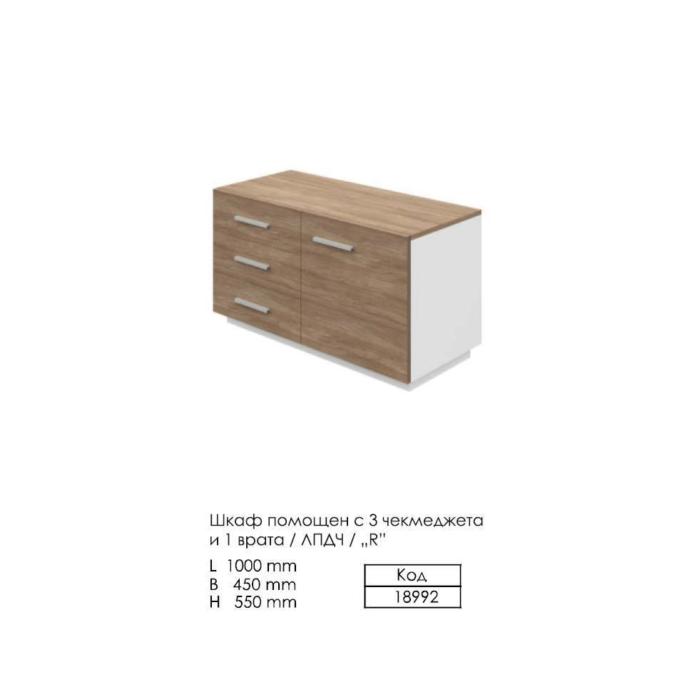 - Код 18992 Помощен шкаф с 3 чекмеджета и 1 врата