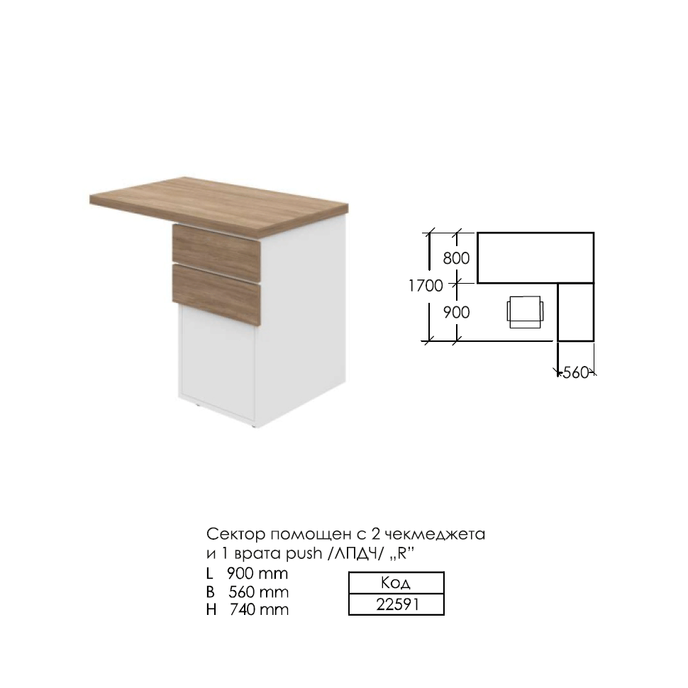 - Код 22591 Сектор помощен с 2 чекмеджета и 1 врата