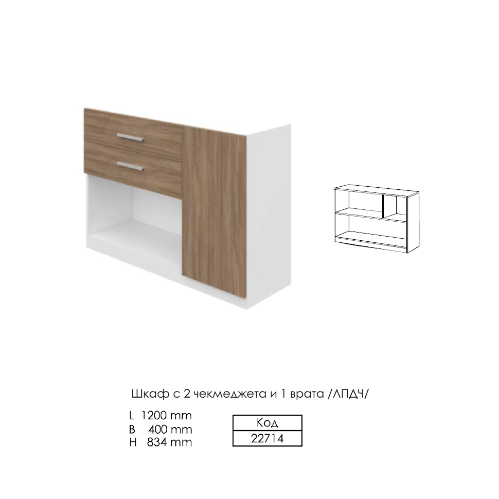 - Код 22714 Шкаф нисък с 2 чекмеджета и 1 врата