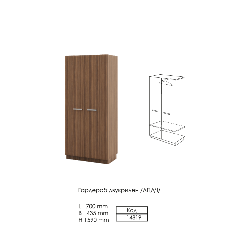 1. ЛПДЧ Kronospan K547 RW Орех Франклин; Стъкло - лакобел черно 4 мм; Стъкло - сиво обемно оцветено 10 мм