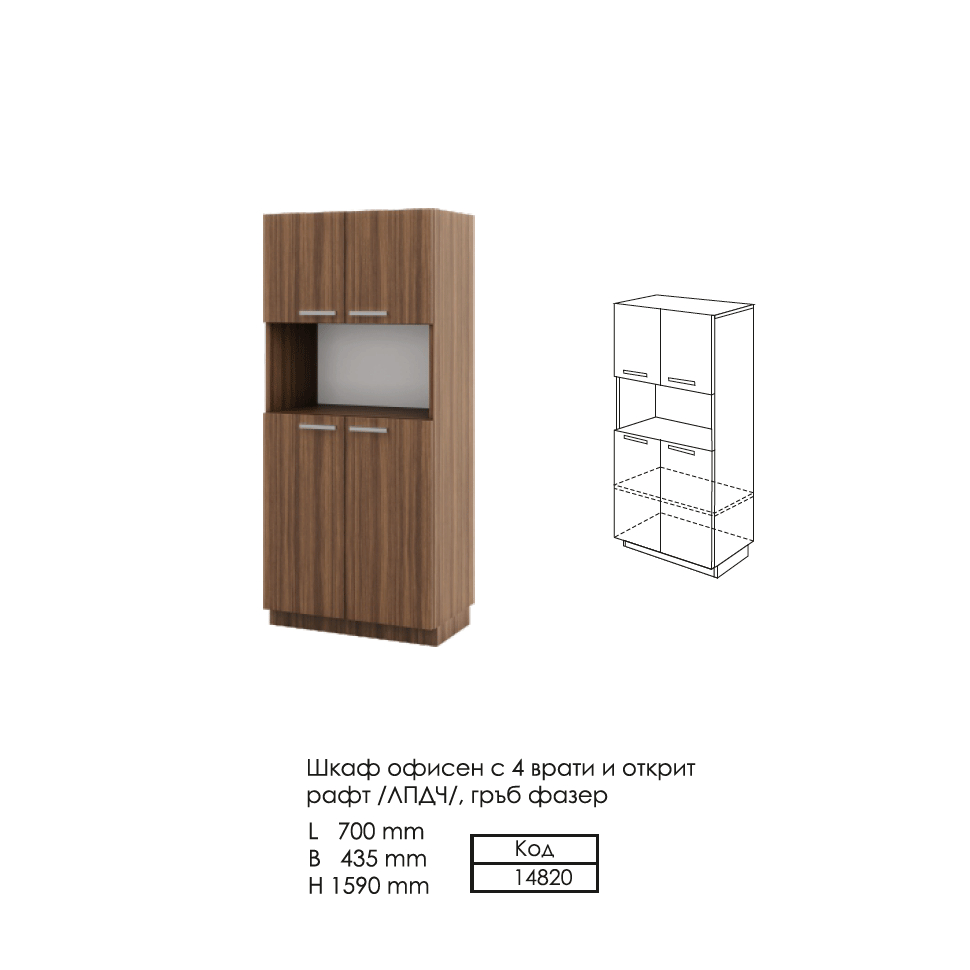 • Код 14820   Офис шкаф с 4 врати и открит рафт