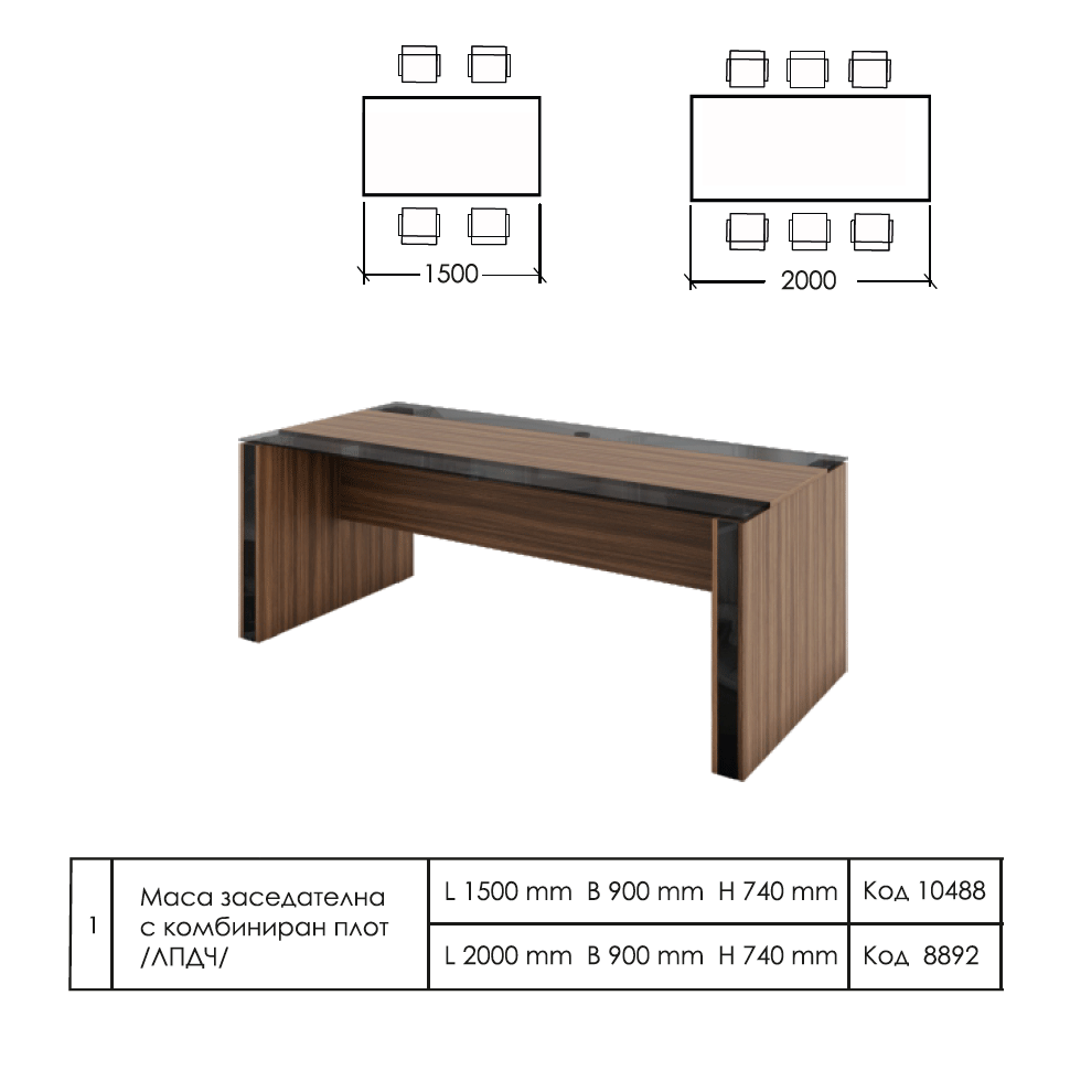• Код 8892     Заседателна маса с комбиниран плот L 2000