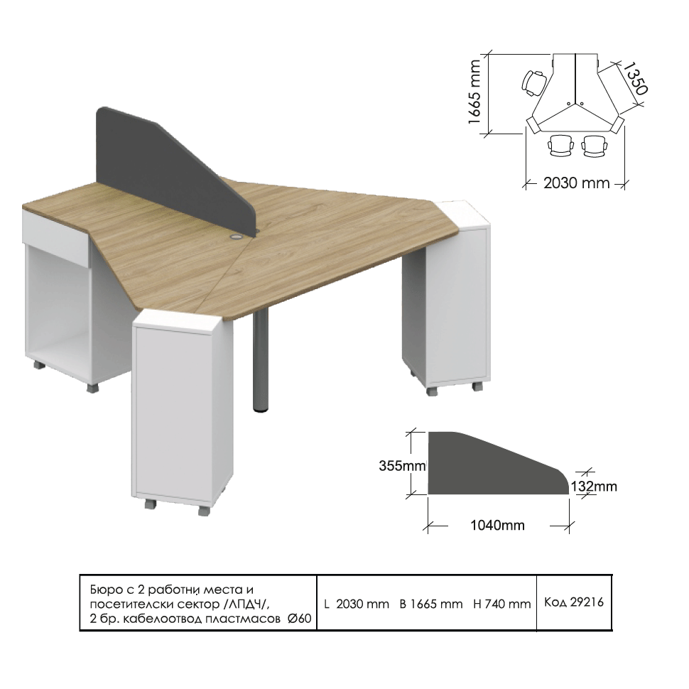 - Код 29216 Бюро Компакт с две работни места и посетителски сектор