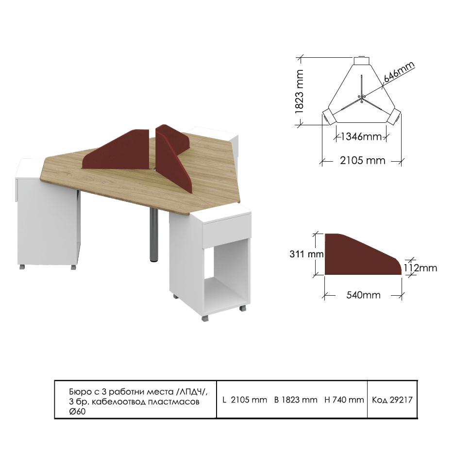 - Код 29217 Бюро Компакт с три работни места