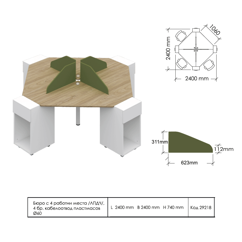 - Код 29218 Бюро Компакт с четири работни места